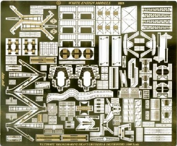 This set contains all the specific parts to build one each of the Graf Spee, Admiral Scheer, Prinz Eugen, Admiral Hipper, Blucher and "Narvik" from the Airfix Graf Spee, Prinz Eugen and Narvik kits. You only need buy one of these sets to cover all of these kits. For each model however, you will need to buy one PE 627, which contains the more generic fittings such as rails. LARGE PICTURE